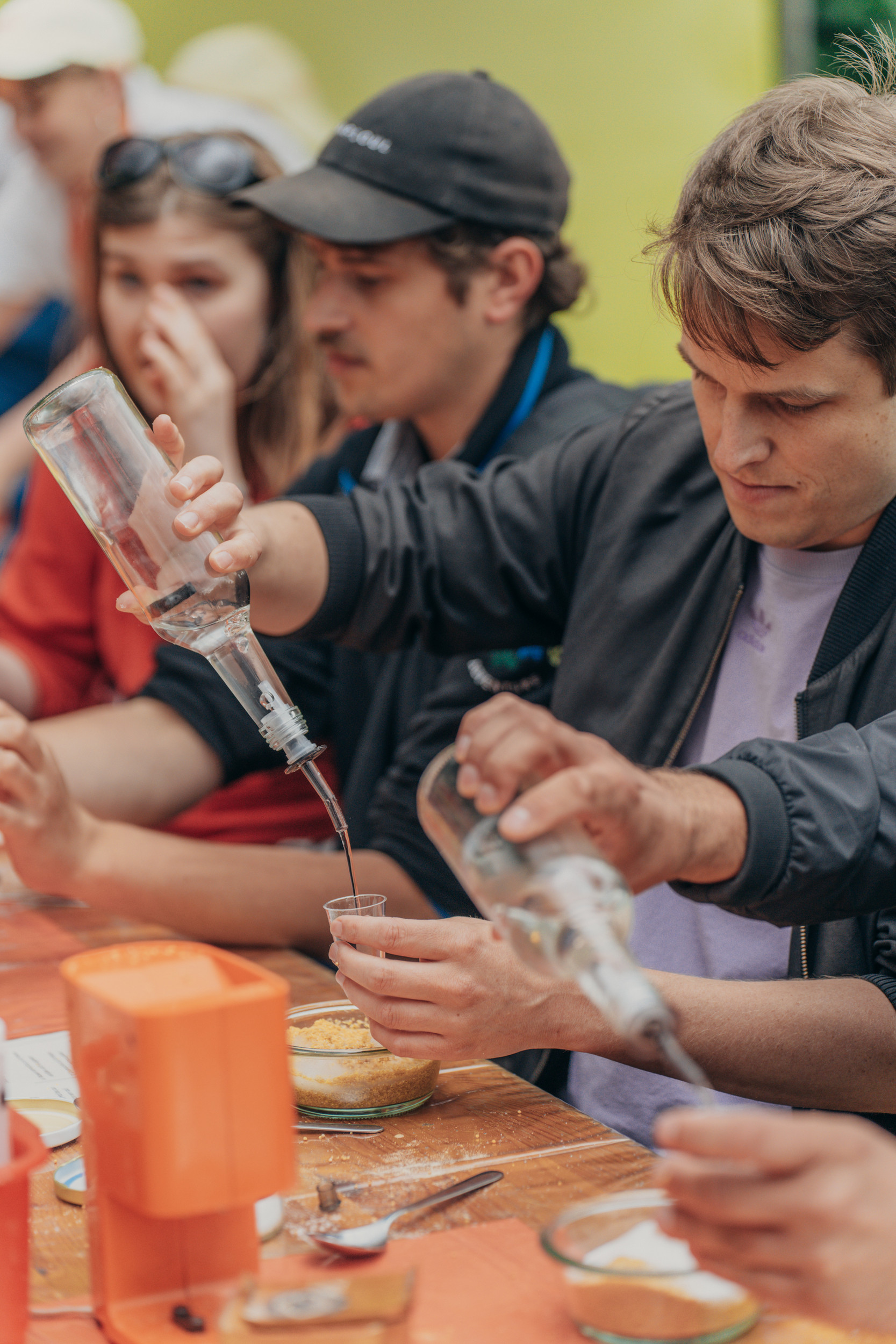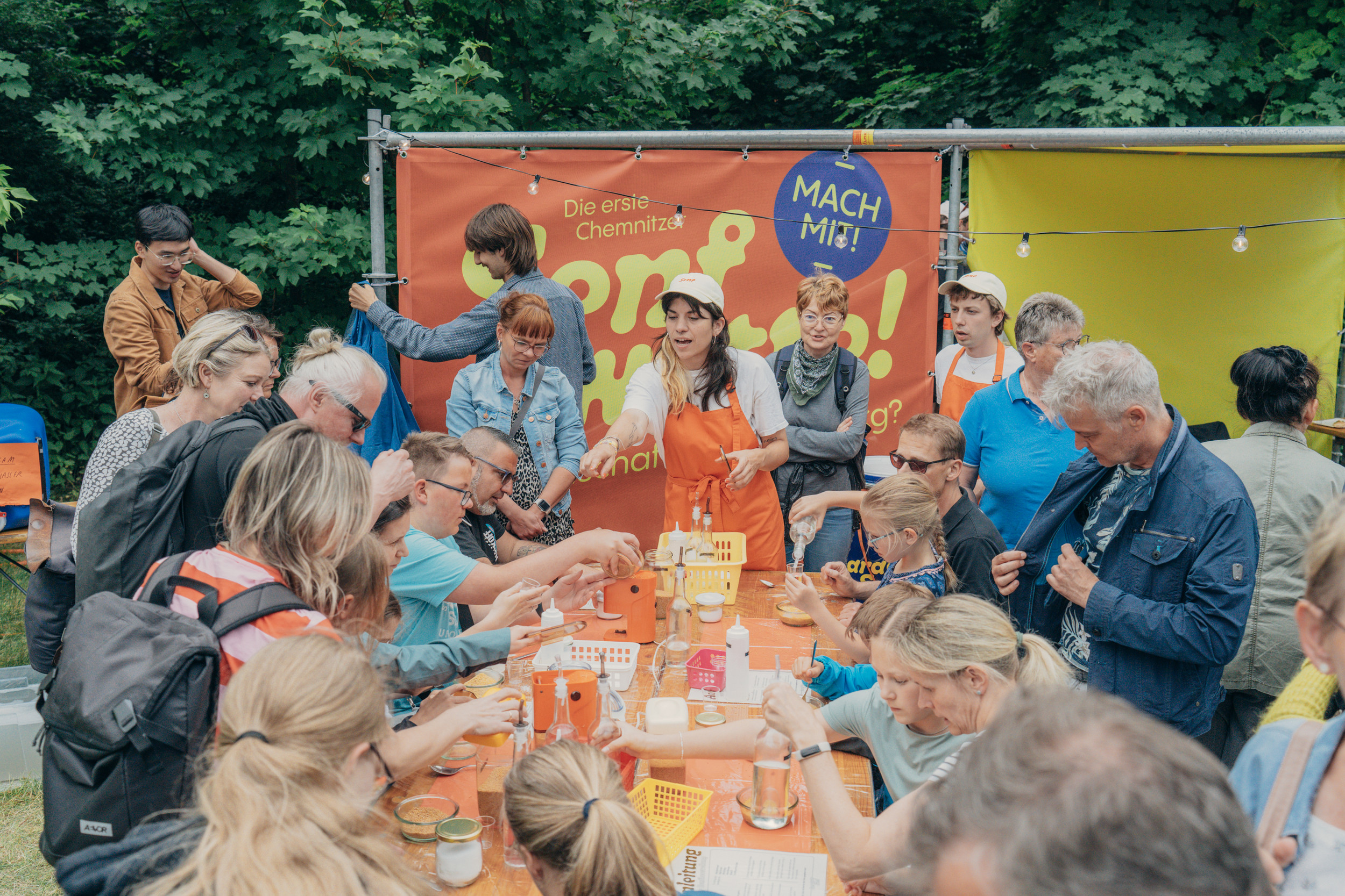 Umrahmt von fast 1.000 Garagen liegt eine Wiese. Sie war die Spielstätte für ein Fest, das ganz im Zeichen der Garagenkultur stand. Das Programm fand unter aktiver Beteiligung von Garagennutzer:innen statt und hangelte sich entlang ihrer Biografien, Hobbys und Fertigkeiten – sei es mit Konzerten, Talkshow oder einer 30 Kilo Senfwette. Die Abende gehörten der Künstlerin Tanja Krone und ihrem Team, die das Musiktheater SONGS OF (IN)SECURITY – die erste Sicherheitskonferenz des ehemaligen Ostens - aufführten.
