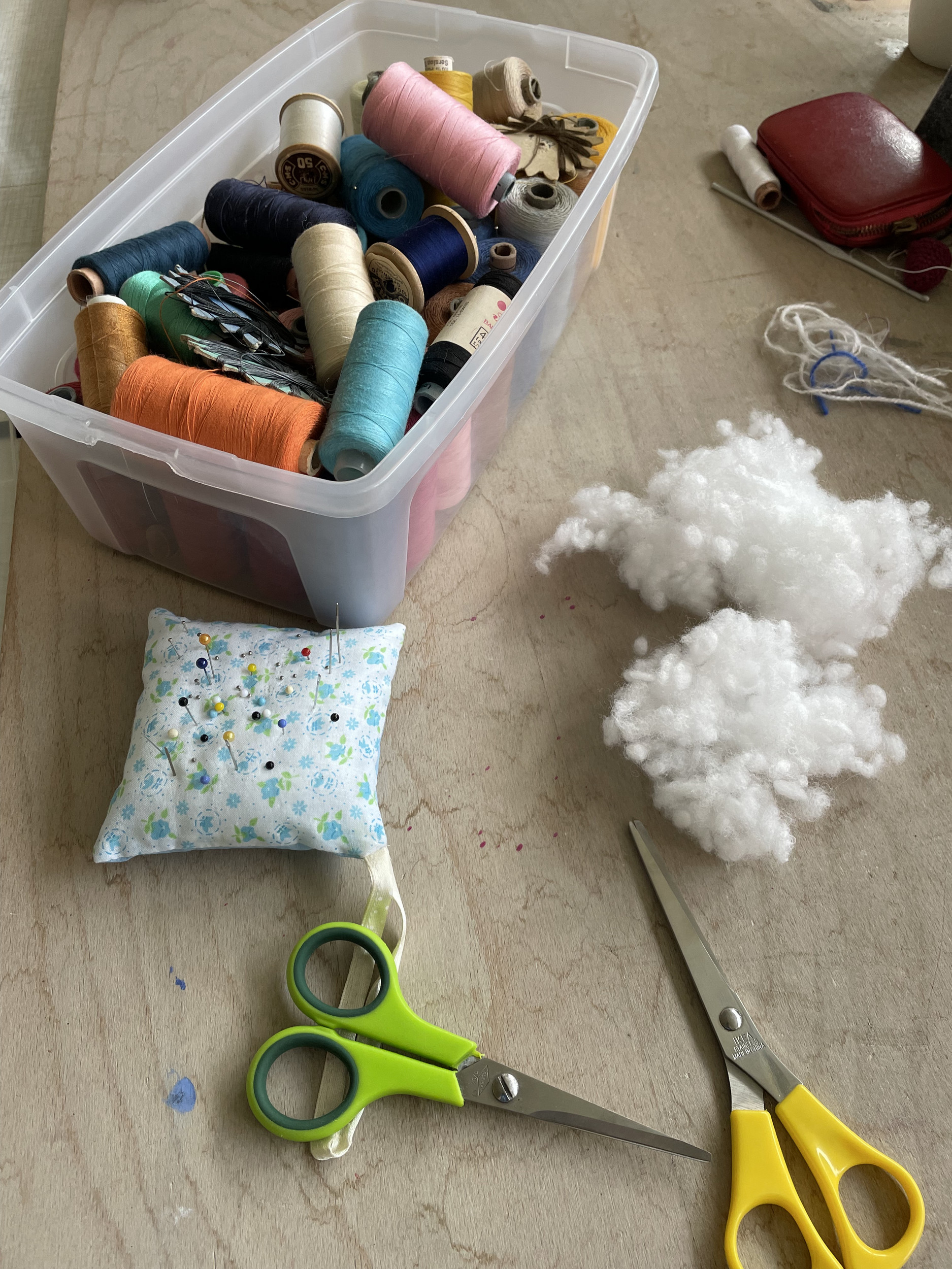 Um das Projekt umsetzen zu können, benötigt es viele fleißige Hände, die den Stoff zu Herzformen zusammennähen, dann mit Füllwatte bestücken und zum Schluss noch eine letzte schließende Naht nähen. Das Projekt wird in Kooperation mit der Volkssolidarität Chemnitz, den erfahrenen Frauen des Nähzirkels in der Montessori-Schule sowie dem Freiwilligenprojekt der Kulturhauptstadt und damit uns Freiwilligen umgesetzt.