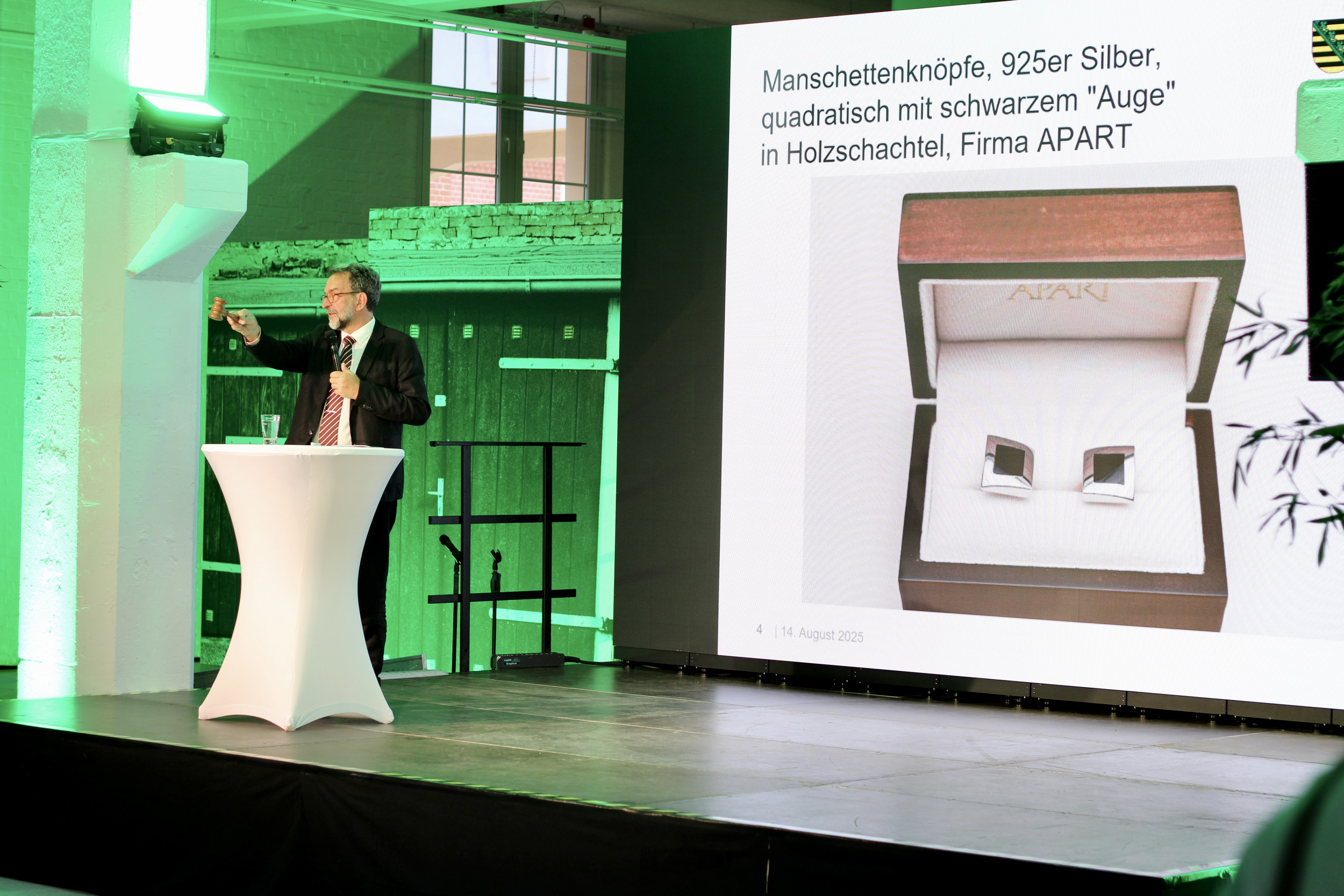 Die Veranstaltung im Areal des Wirkbau, einem Industriekomplex des ehemals größten Werkes für Textilmaschinen in Deutschland, eröffnete ein Bandonion-Verein u.a. mit der Eurovision-Hymne. Nicht nur musikalisch passend zum Kulturhauptstadt-Jahr, sondern auch die Geschichte des Bandonion ist eng verbunden mit Chemnitz, wo Carl Friedrich Uhlig um 1840 mit dem Bau der ersten Concertina begann. Durch das Programm führte ein Duo von zwei jungen Mitarbeitenden der Chemnitz2025 gGmbH, die mit viel Charme und Witz die weiteren Beiträge ankündigten.