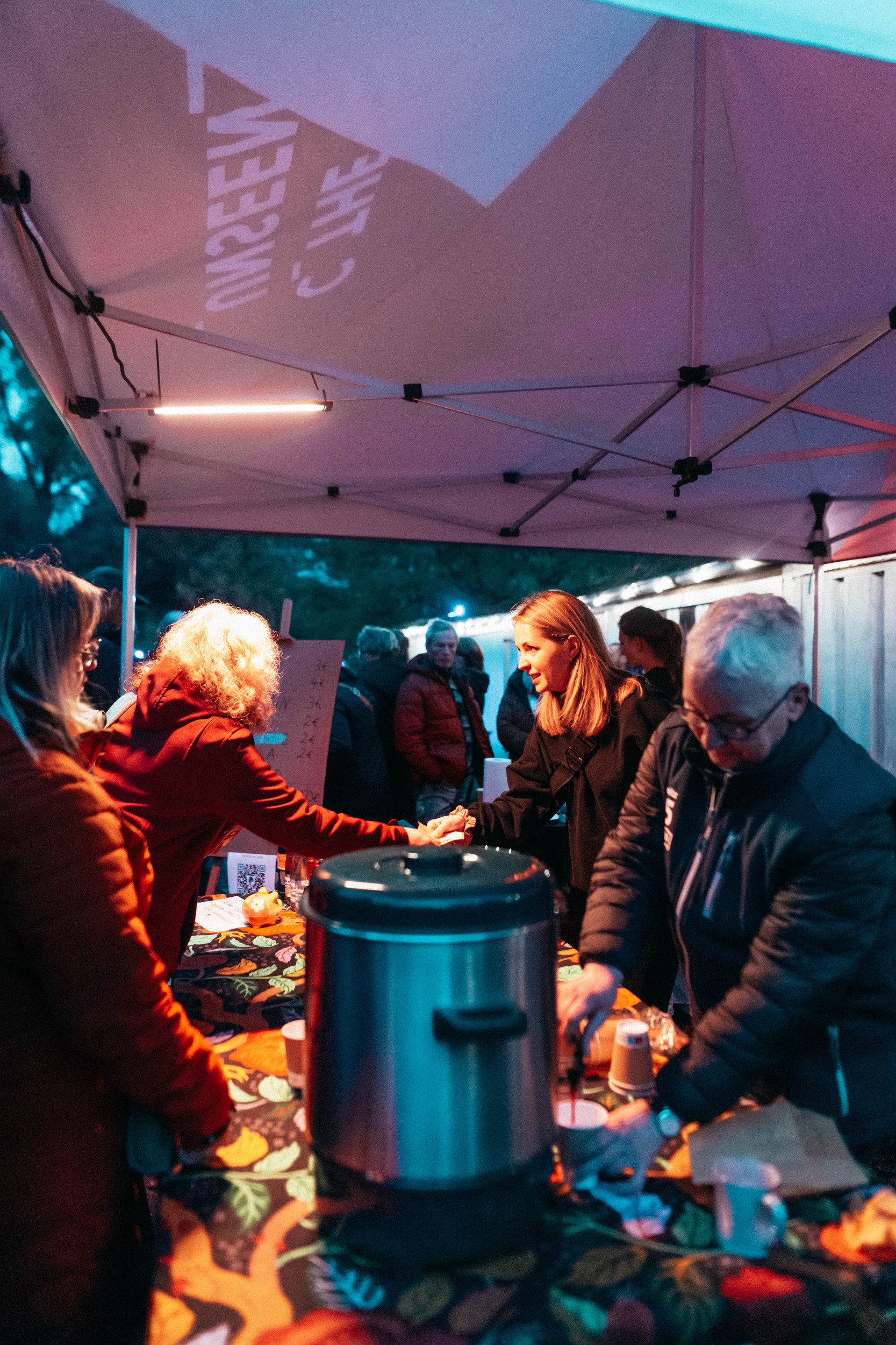 An diesem Sonntagabend trafen wir Volunteers und zahlreiche Gäste aus der Umgebung im Garagenhof Ahornstraße zum Event. Seit 2023 findet dort jährlich ein kleines Garagenkonzert statt – jedes Mal mit einer anderen Band, die stets für besondere Stimmung sorgt.
