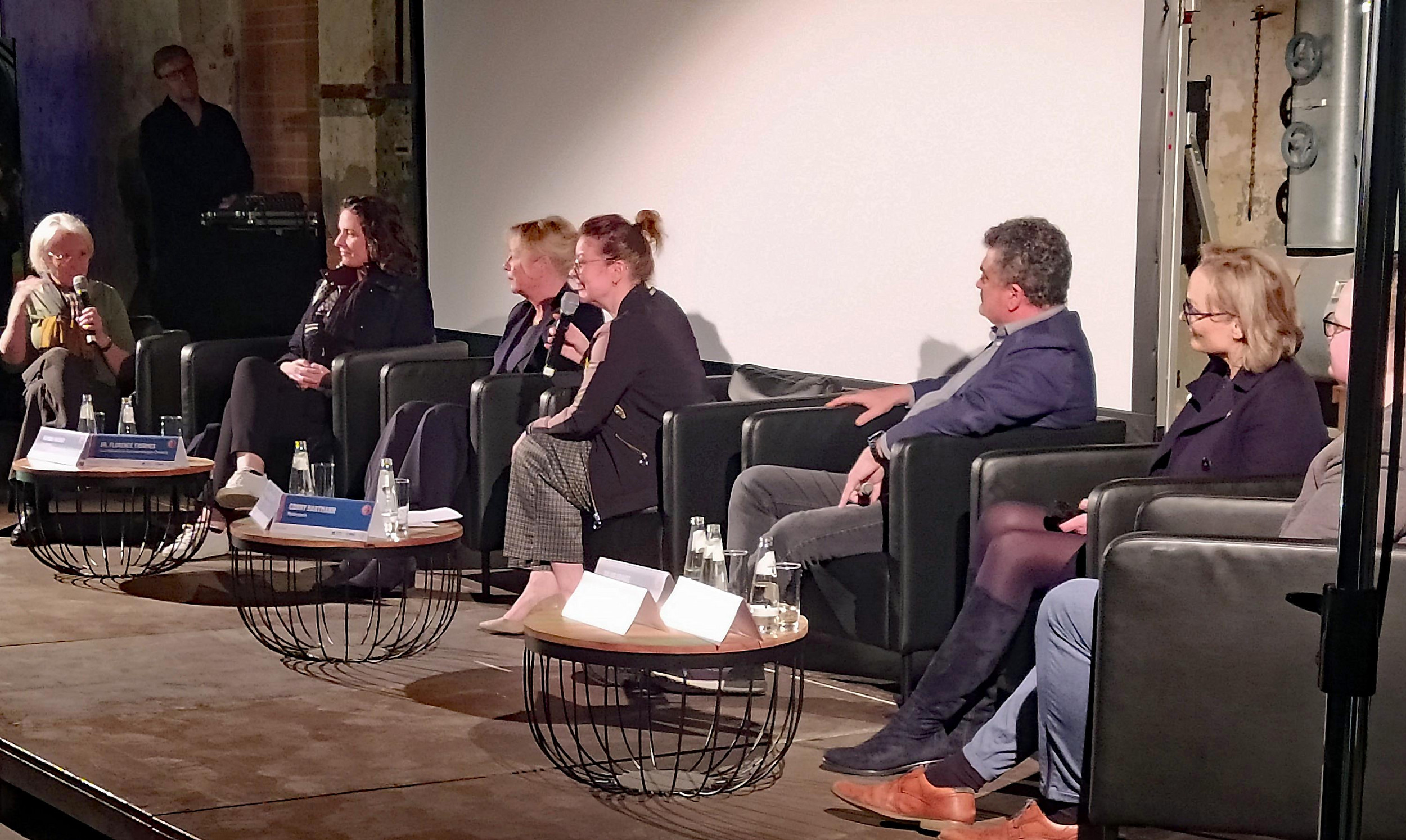 Eine Talkrunde hatte bereits begonnen. Conny Hartmann (Moderation) war gerade noch beim Vorstellen der Teilnehmer. Die Generaldirektorin der Kunstsammlungen Chemnitz, Frau Dr. Florence Thurmes, die Stadtführerin Ramona Wagner, auch bekannt als Bertha Hartmann, die Bürgermeisterin Kultur Dagmar Ruscheinsky und der Bürgermeister von Amtsberg, Herr Krause, widmeten sich gemeinsam mit zwei weiteren Gästen dem Thema „Wie werden die Chemnitzer Interventionsflächen Teil der Kulturlandschaft nach 2025?“ Locker, informativ und publikumswirksam geführt, ließ der Talk keine Langeweile aufkommen. Humor kam nicht zu kurz. So wie ich hatten viele Zuhörer wohl das eine oder andere Aha-Erlebnis. Die Menschen mögen nicht nur 2025, sondern auch darüber hinaus eigene Ideen im Garagen-Campus umzusetzen. Die Botschaft dieses Talks macht seither die Runde. Für Alle, bei denen es für eine Genehmigung von Projekten bisher nicht gereicht hatte, eröffnen sich also neue Chancen. Dieser Standort wird auch weiterhin von der aktiven Mitgestaltung der Chemnitzer Bürger leben.