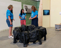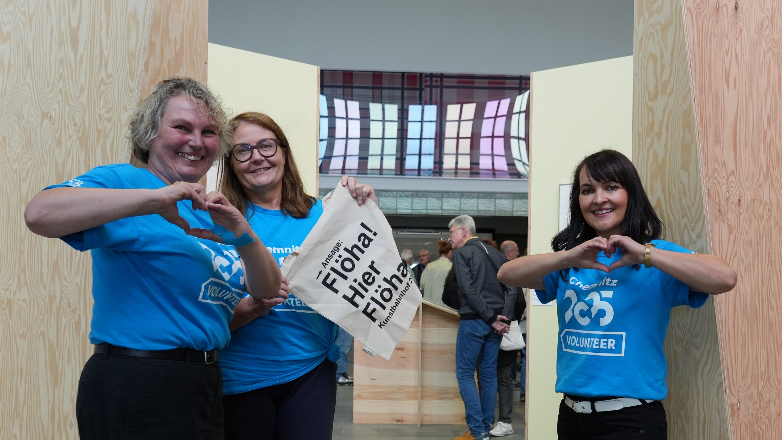 Dörte wohnt in Dresden, Simone in Augustusburg und Solveig in Chemnitz. Obwohl sie schon lange Botschafterinnen für die Kulturhauptstadt sind, haben sie sich erstmalig im Kunstbahnhof Flöha getroffen. Der Startschuss für ihr Engagement fiel mit einer Einweisung und der feierlichen Vernissage im April. Seitdem begleiten sie die Ausstellung „Verstrickungen“ bis zur Finissage und dem abschließenden Abbau der Kunstwerke im August.