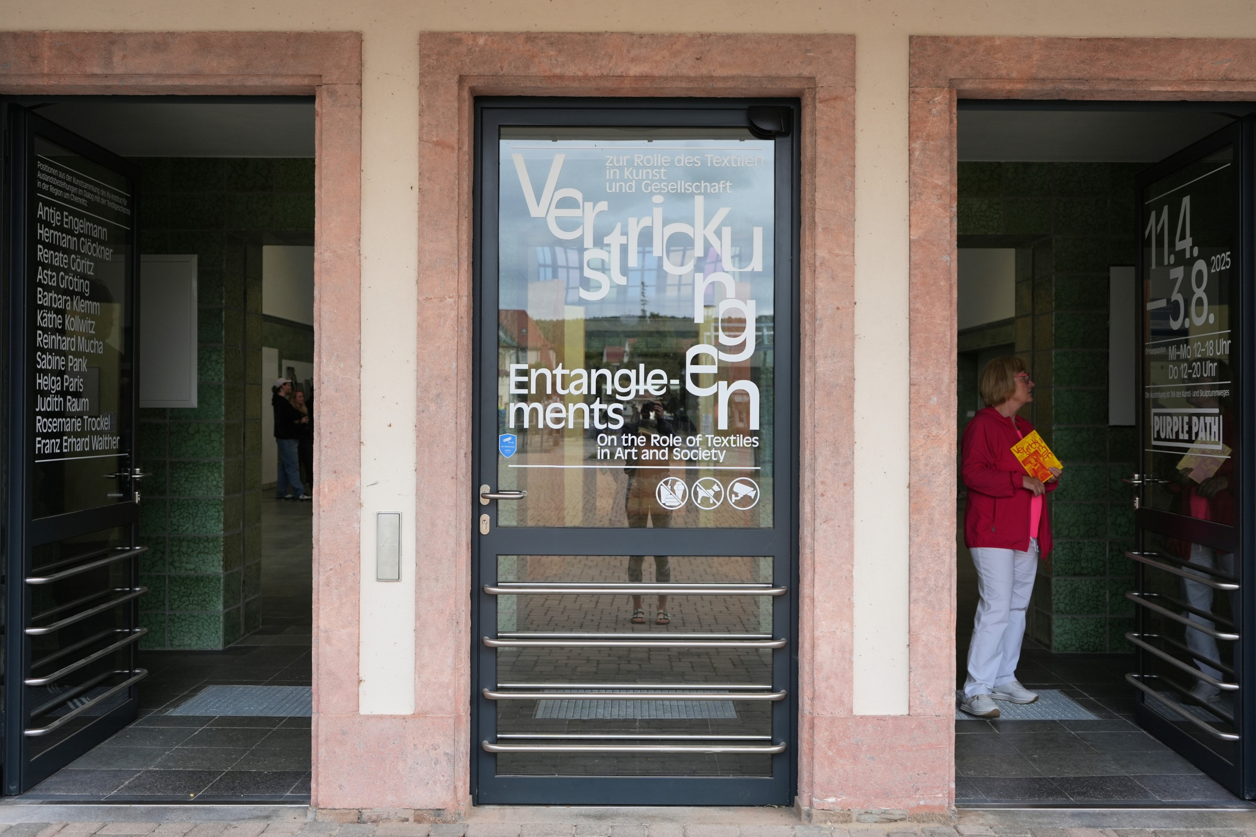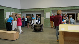 Seit Beginn der Ausstellung "Verstrickungen" sind wir dabei. Unsere Einsätze dauern vier bis sechs Stunden und beginnen immer mit festen Abläufen: Nach dem Anruf bei Holger (Holger ist der engagierte sympathische Mitarbeiter der Stadtverwaltung Flöha) öffnen sich die Türen. Wir schalten die Videoinstallationen ein und bereiten die Bewirtung für die Besucher vor.