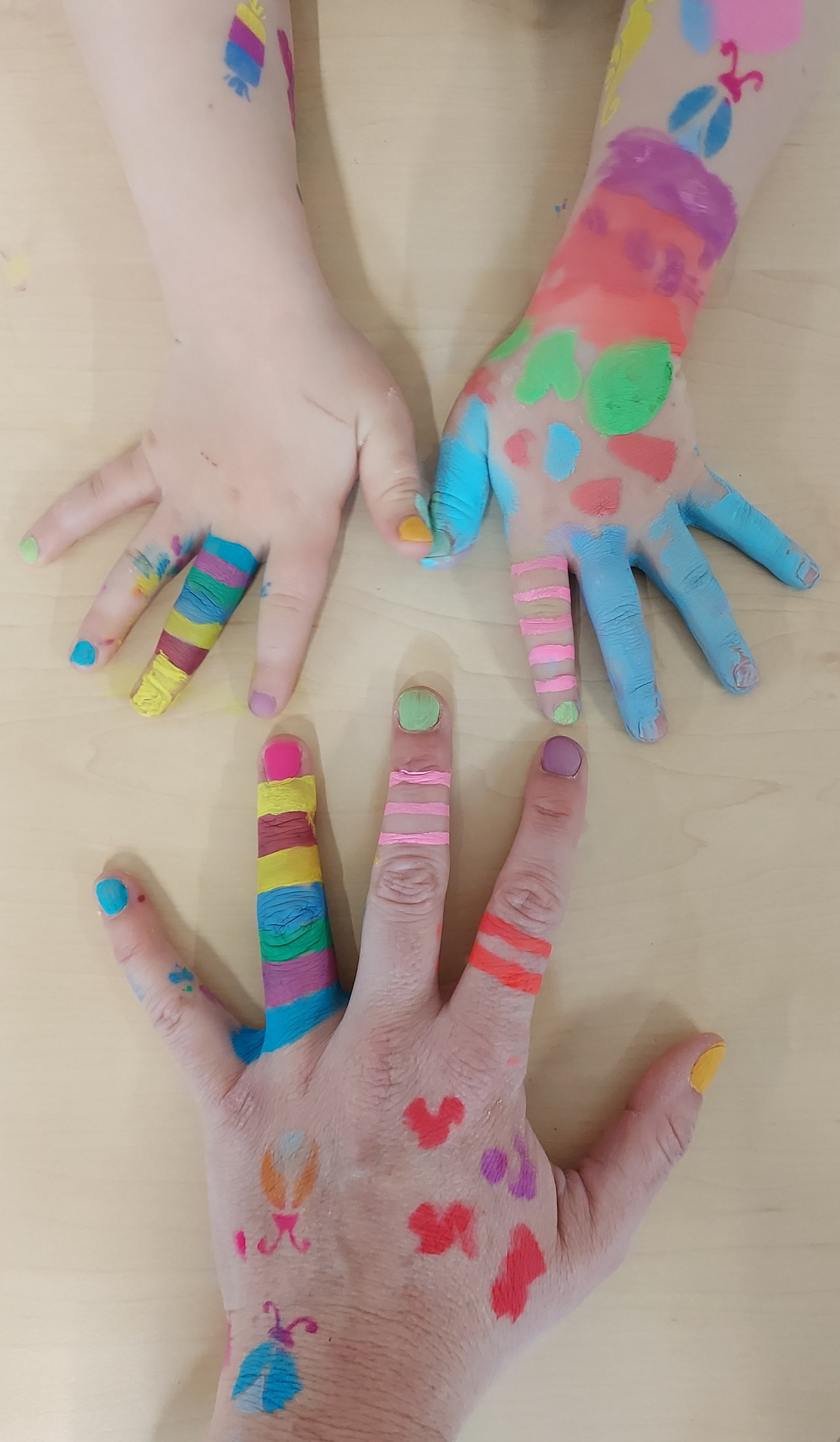 Für die Kinderbetreuung lag Kinderschminke bereit. Schmetterlings- und Katzenschablonen wur-den schnell gegen freie Improvisation ausgetauscht. Gesicht und Hände waren Leinwände und alle Farben natürlich wasserlöslich. Zum Schluss schwebten Seifenblasen. Kleine Kinderfinger brachten sie zum Platzen – ein Selbstläufer. Kind zufrieden, Volunteer glücklich.