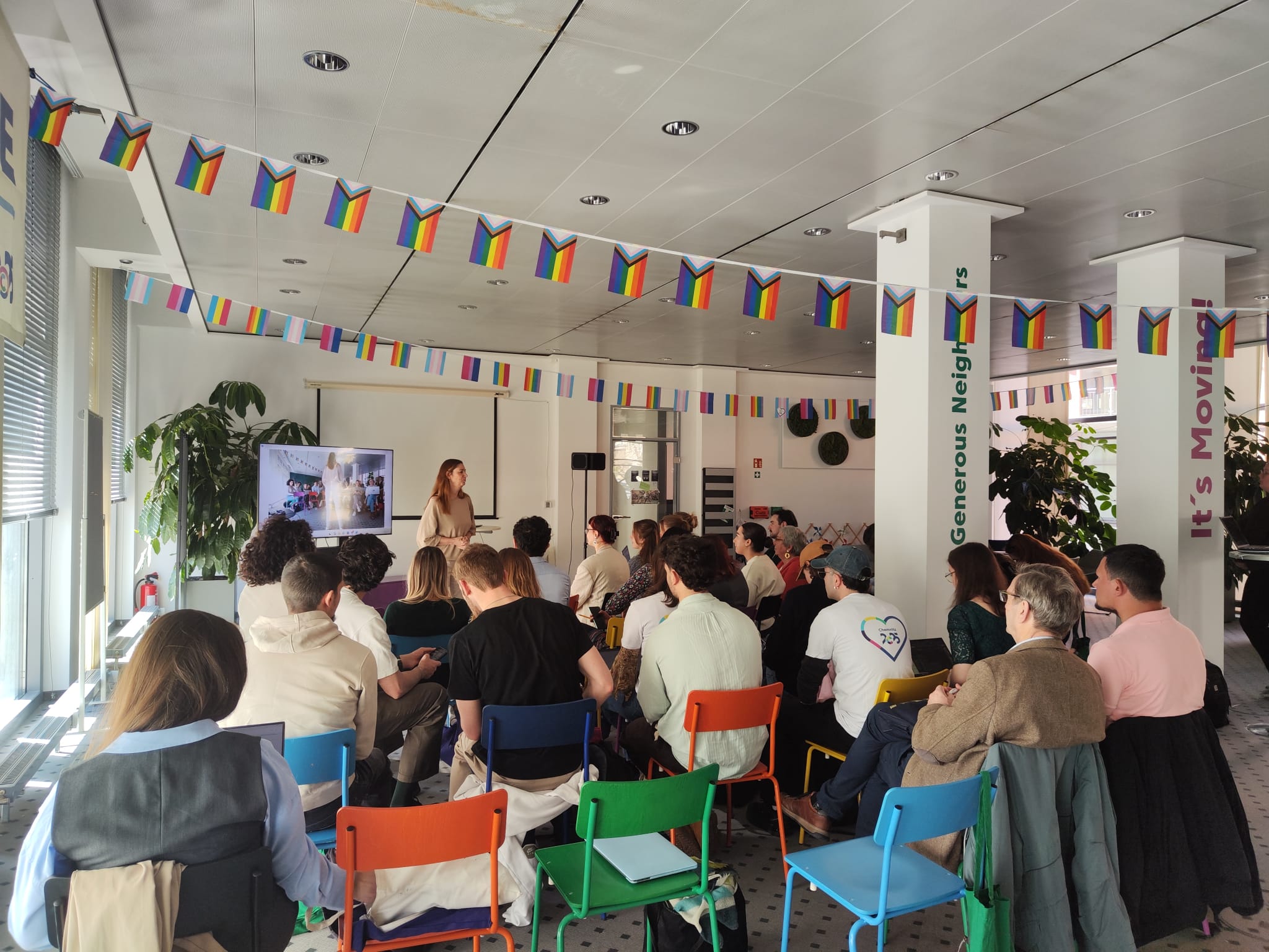 Mehrere Kolleg:innen kamen zu der Präsentation und konnten sich mit den Studiernden austauschen und ihnen Fragen stellen.