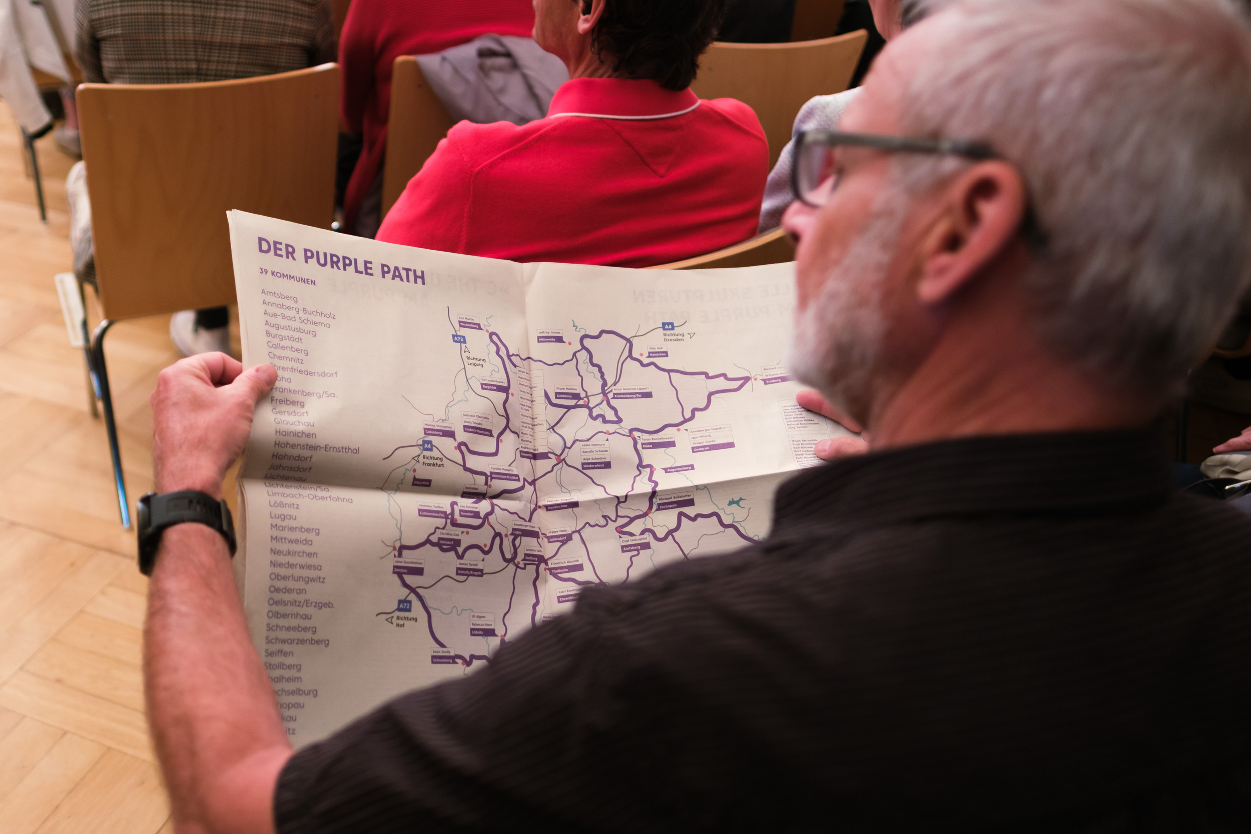 Mit zeitgenössischer Kunst im öffentlichen Raum stellt dieser Kunstweg eine Verbindung her zwischen den 38 Kommunen der Kulturhauptstadtregion und der Stadt Chemnitz. Der PURPLE PATH ist eines der Hauptprojekte für Chemnitz 2025 und dauerhaft angelegt. Diese einzigartige Ausstellung wird sich in den kommenden Jahren zu einem neuen touristischen Anziehungspunkt in der Region entwickeln.