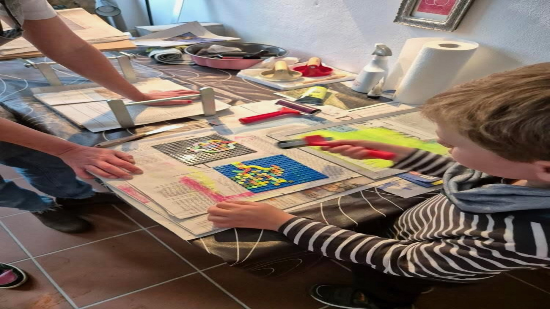 Children's workshop linocut and Lego printing