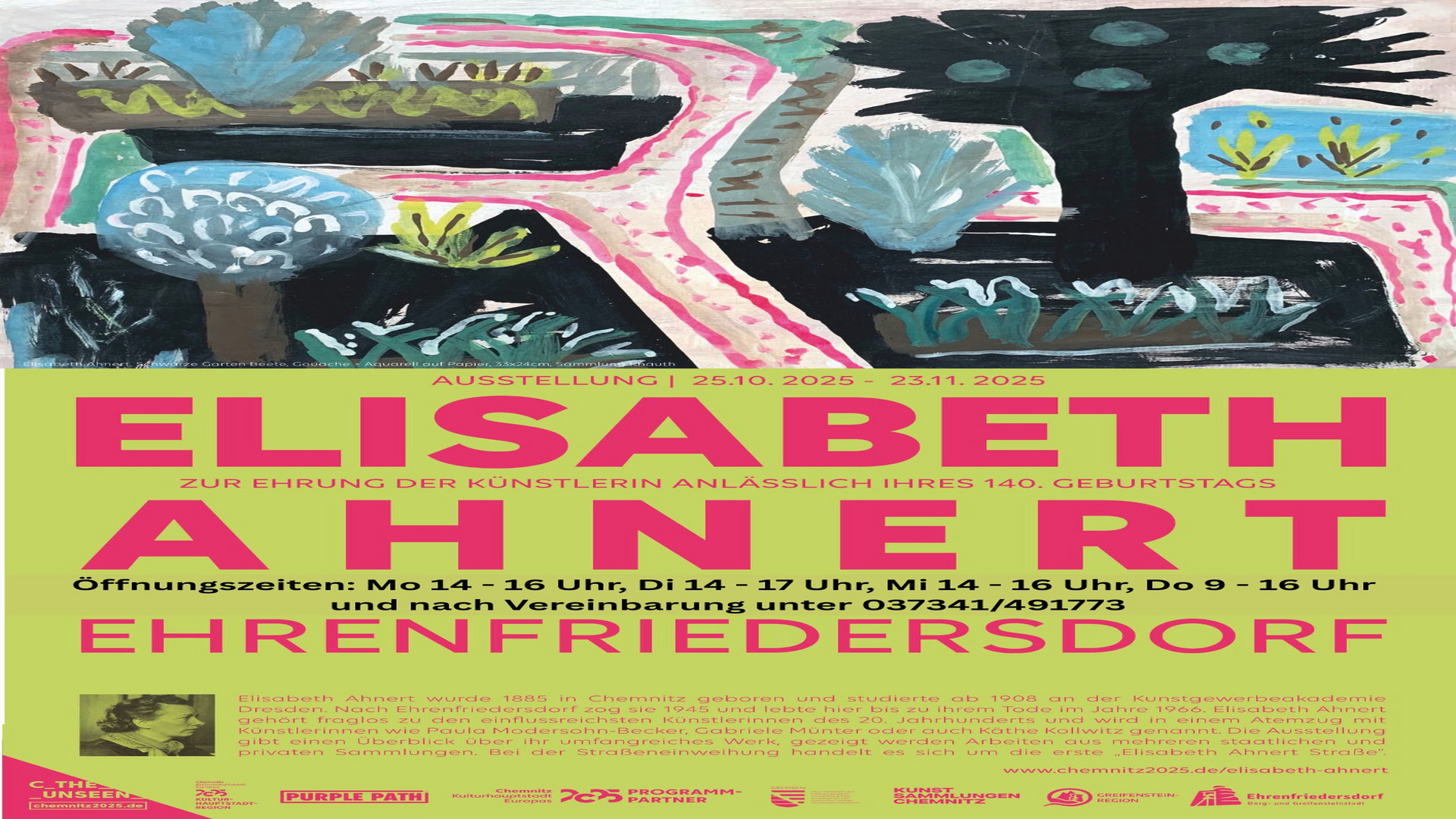To mark the 140th birthday of the Chemnitz-born artist Elisabeth Ahnert (1885-1966), the town of Ehrenfriedersdorf is dedicating a comprehensive exhibition to this important representative of classical modernism