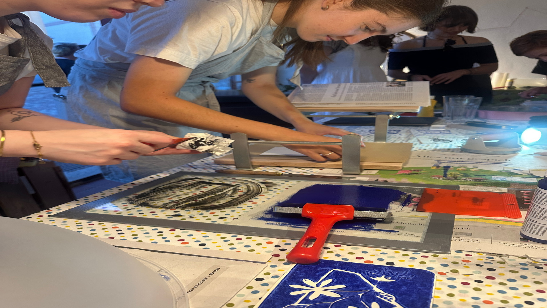 The resulting prints are shown in a small exhibition in the Ladenexperiment - as a visible sign of the diversity and creativity in Augustusburg. The shop is also open irregularly outside of the fixed workshop hours and the works of art can be admired at any time through the large shop windows.