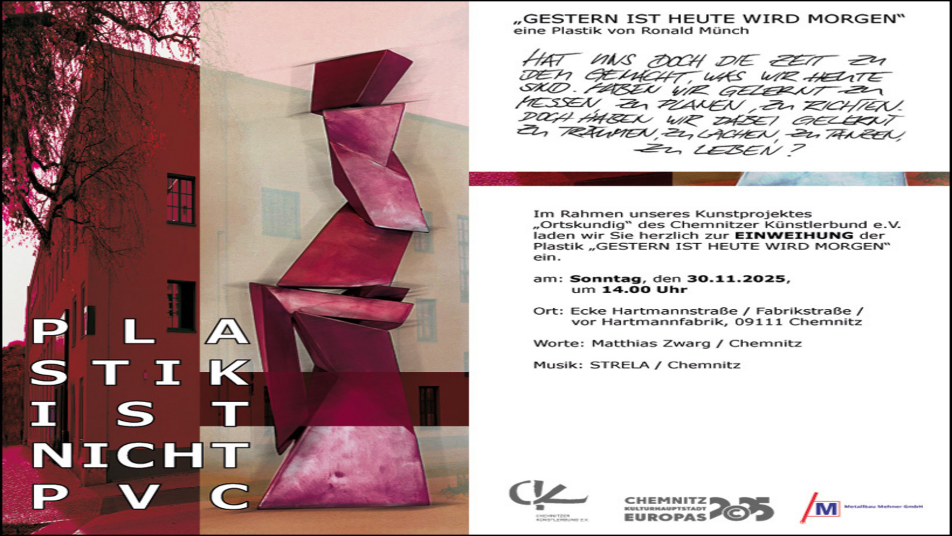 Ceremonial inauguration of the sculpture - YESTERDAY IS TODAY WILL BE TOMORROW - by Chemnitz artist Ronald Münch