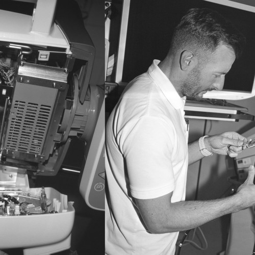 Imaging procedures and their equipment are available to medical staff as an aid to knowledge. The sense of sight and its physical extension, photography, promise a high degree of rationality. At the invitation of Chemnitz Hospital, photographer Felix Bielmeier spent six months developing a work that visualised things not perceived by the public. Medical work and patient care were at the centre of the project - as well as a reflection on aesthetic boundaries and the ambivalent possibilities of the photographic image between information and social practice.