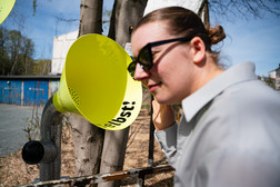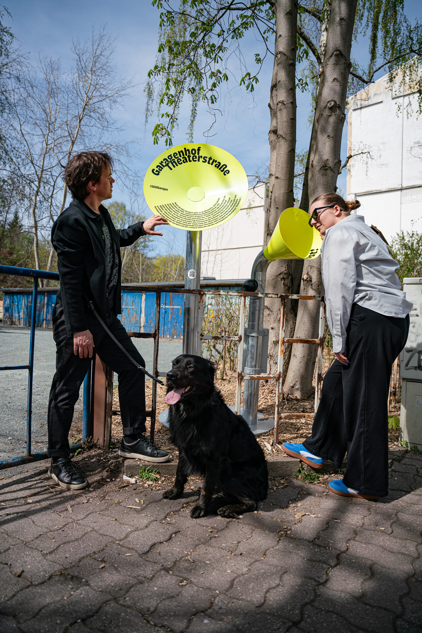 Residents and guests explored Chemnitz on their own with a walk along the garage trail. They strolled through the garage courtyard, looked over the fence, found local stories and got talking to their fellow residents. Bright yellow funnel-shaped information stations, designed by budding designers from Burg Giebichenstein University of Art and Design Halle, were set up at the 10 locations. These presented short stories and curious facts.