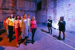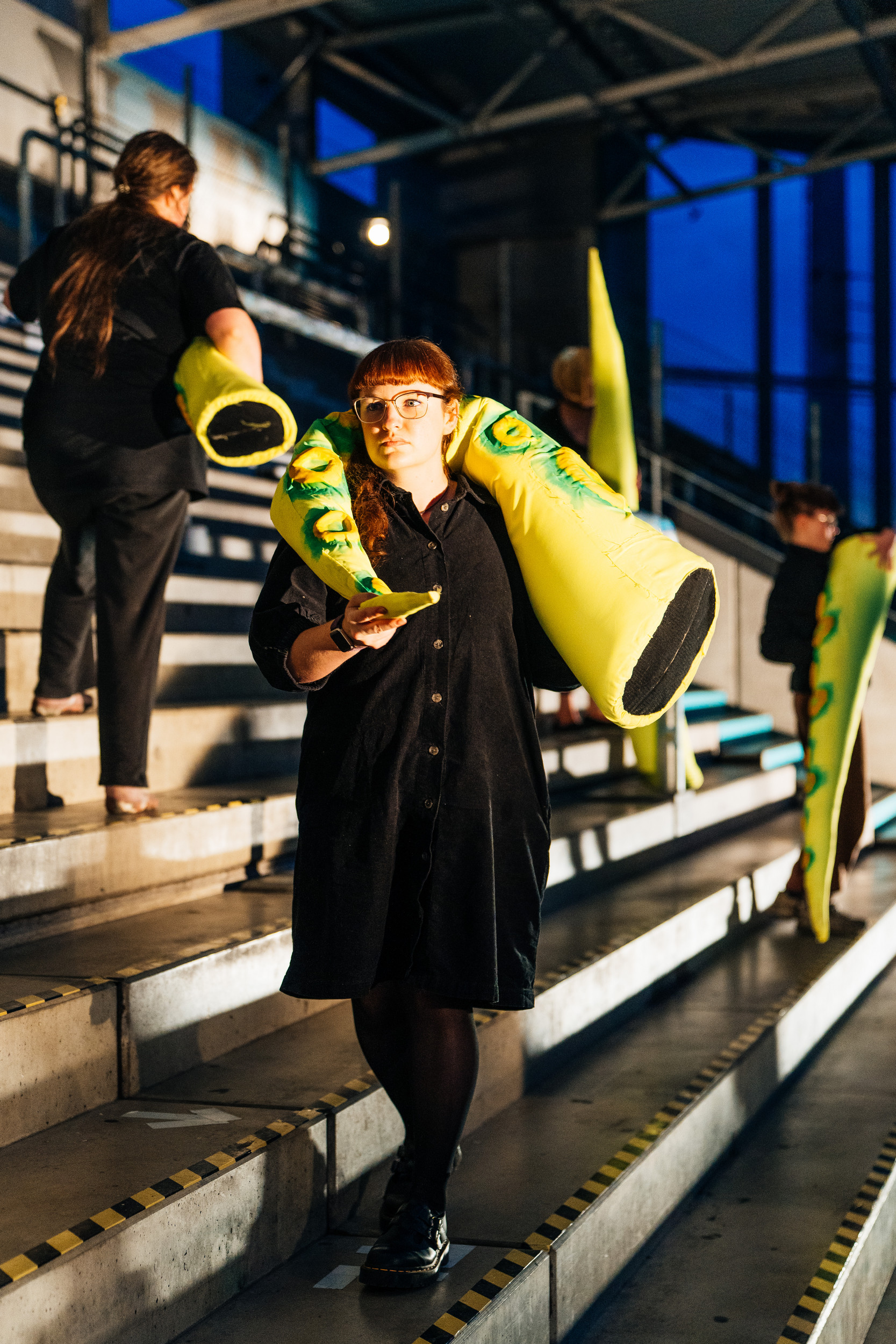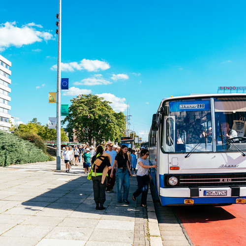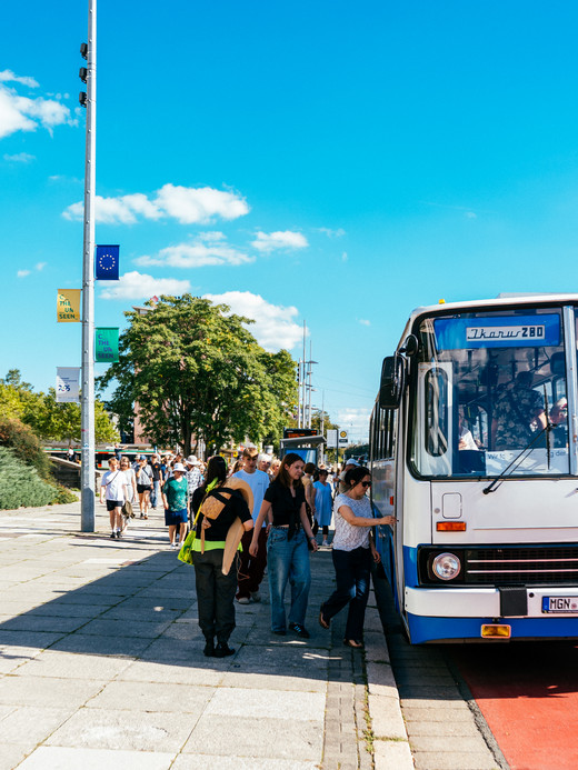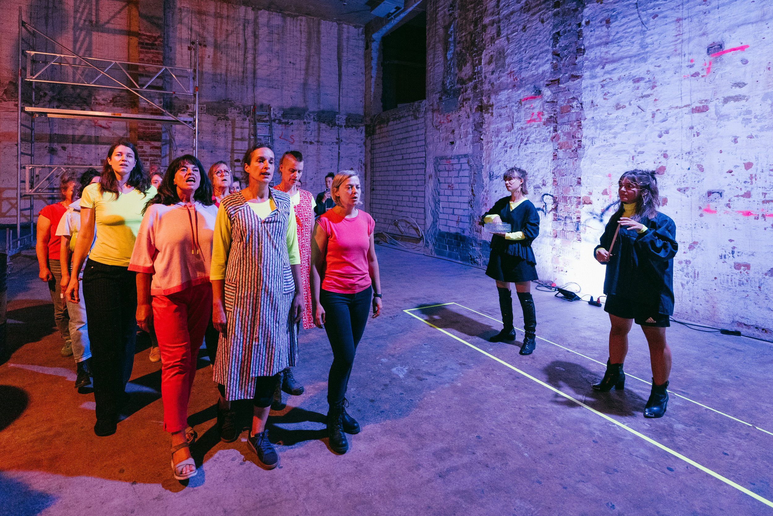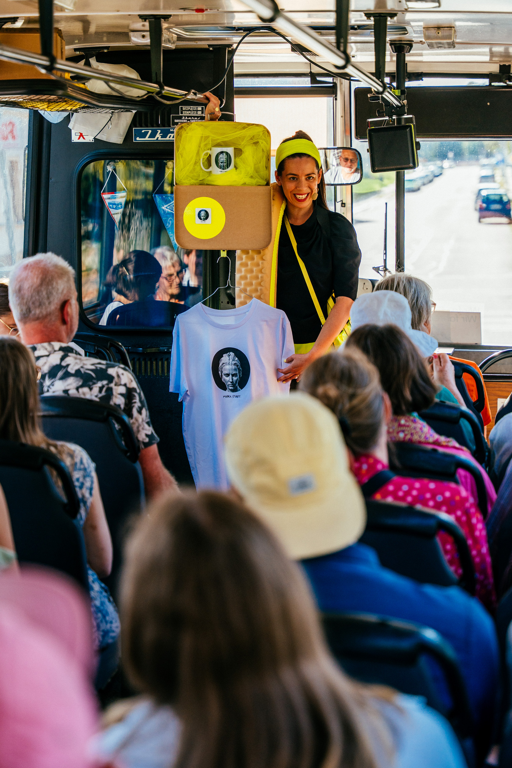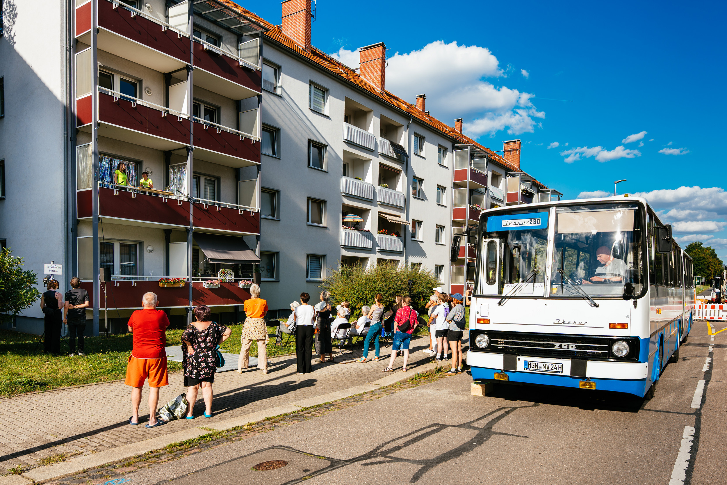 At the bus station, the public boarded an old Ikarus bus. The buses were built by the manufacturer of the same name in Hungary between 1973 and 1989. They were mainly used in the former Eastern Bloc countries. Accompanied by a tour guide, the tour travelled through Chemnitz to various workplaces. A separate theatre play was performed at each one, sometimes classically, sometimes with figures, sometimes with dance. It was always about the question: What do I have to do to be able to work? What is the price?