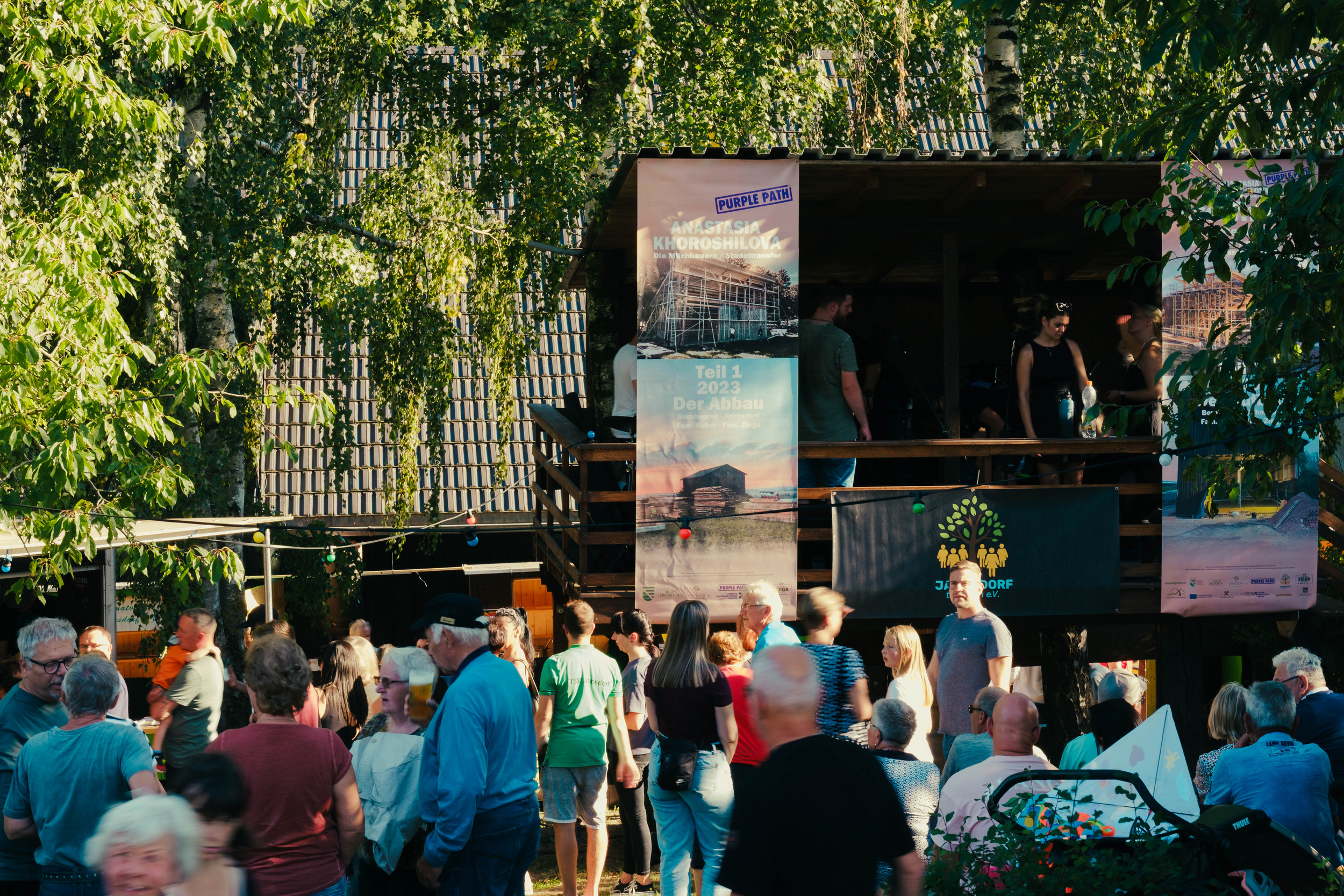 Am Anfang des Projekts stand die Frage, welche Entwicklungen in der Landwirtschaft galten und gelten, sowohl für Bauern in den alten wie auch den neuen Bundesländern. Ein ehemaliger im bayerischen Bernbeuren gebauter Heustadel mit außergewöhnlicher Architektur sollte sich als Schlüssel für das Projekt "Die Milchbauern/Der Stadeltransfer“ herausstellen. Von dem Bauernehepaar Huber in den 1980er Jahren errichtet, wurde er nicht mehr gebraucht, denn Hubers mußten Anfang der 2000er Jahre ihre Milchwirtschaft aufgeben, da sie nicht mehr profitabel zu führen war. Gleiches galt für das Ehepaar Ziegs im sächsischen Jahnsdorf, das sich nach der Wende in der Milchwirtschaft engagierte und sich gezwungen sah, von der Milch- auf Fleischwirtschaft umzustellen. Mit ihren Hoffesten und dem Direktvertrieb im „Hofladen“ weit über die Grenzen des Erzgebirges bekannt, initiierten Ziegs eine Gruppe von Jahnsdorfern, die im Jahr 2023 den Stadel in Bernbeuren ehrenamtlich und eigenhändig mit Unterstützung einiger Bernbeurer abbauten und ihn in Jahnsdorf neu errichteten. Hier wird er zum dörflichen und kulturell-sozialen Treffpunkt wie auch zum temporär zu nutzenden Kunstort. Durch die räumliche Verschiebung von Bayern nach Sachsen entstand eine soziale Skulptur, an der sich Handwerkerinnen und Handwerker, Freiwillige im Ehrenamt wie auch die Künstlerin Anastasia Khoroshilova beteiligten.