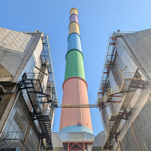 Daniel Buren, 7 Farben für einen Schornstein /Sept Couleurs pour une cheminée, 2013; Courtesy: eins energie in sachsen GmbH & Co. KG; Foto: eins energie in sachsen