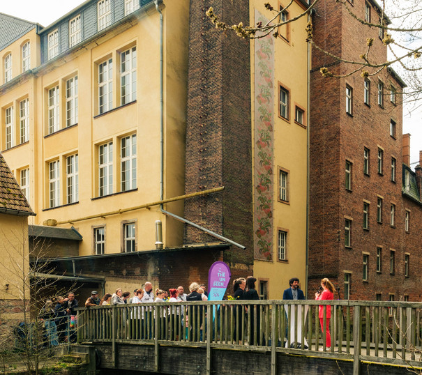 Für die Rückfassade des Museums hat Anja Schwörer die Wandarbeit „Mapping Patterns: Industrial Flora“ realisiert – ein großflächiges Kunstwerk aus farbigen, aneinandergereihten Quadraten. Das Werk veranschaulicht die Technik und Geschichte der Jacquard-Weberei und verweist auf Stoffstrukturen, gewebte Ornamente und die Funktionsweise von Webstühlen, die in der Schauweberei dokumentiert, erforscht und an historischen Maschinen vorgeführt werden.
