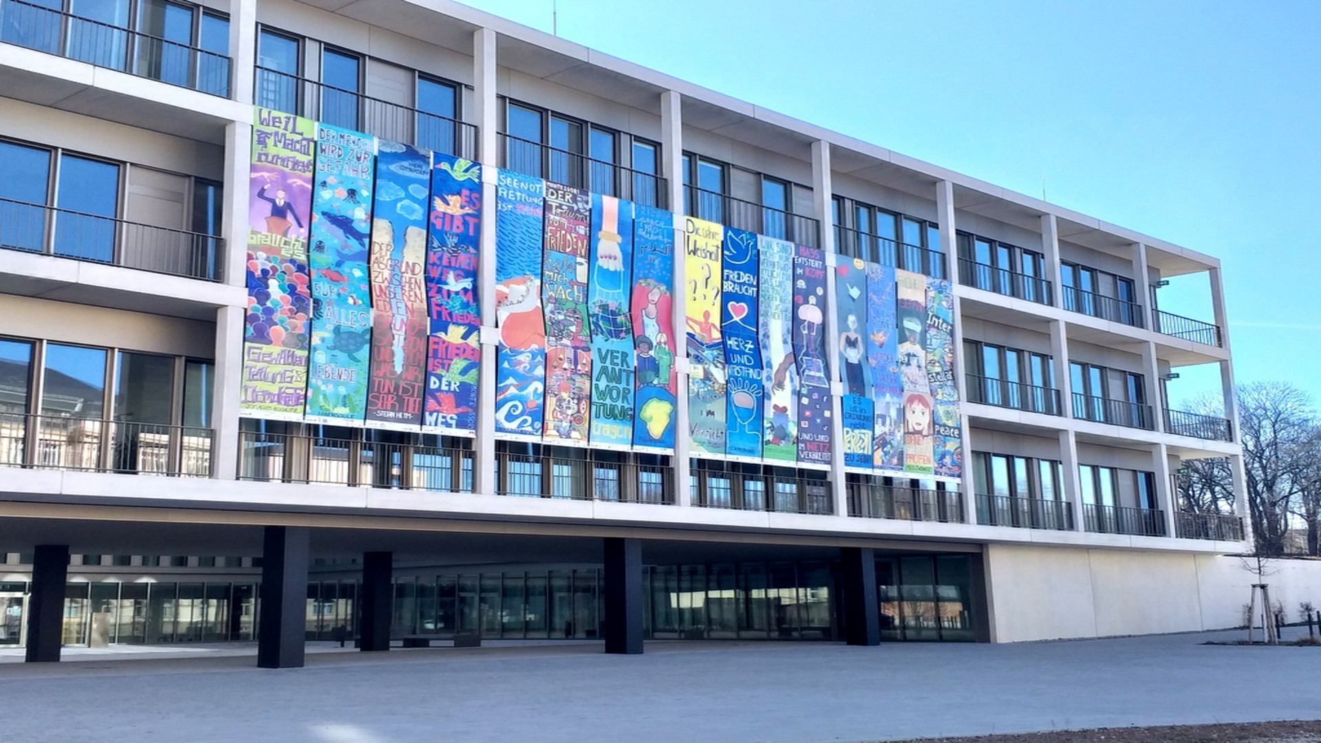 In 15 Jahren Projektarbeit und mithilfe von über 100 Kindergärten und Schulen: 320 Friedensbotschaften junger Menschen für eine bessere Gesellschaft, für Toleranz, Frieden und Demokratie werden in Chemnitz gezeigt. Alle vier Fassaden und die vier Seiten des Lichthofes der Schule am Hartmannplatz sind mit Bannern behangen. Seit 2011 gestalten junge Menschen im Kunstprojekt von “Aktion C” Banner und Plakate für den Chemnitzer Friedenstag als Zeichen für ein friedliches und tolerantes Miteinander.