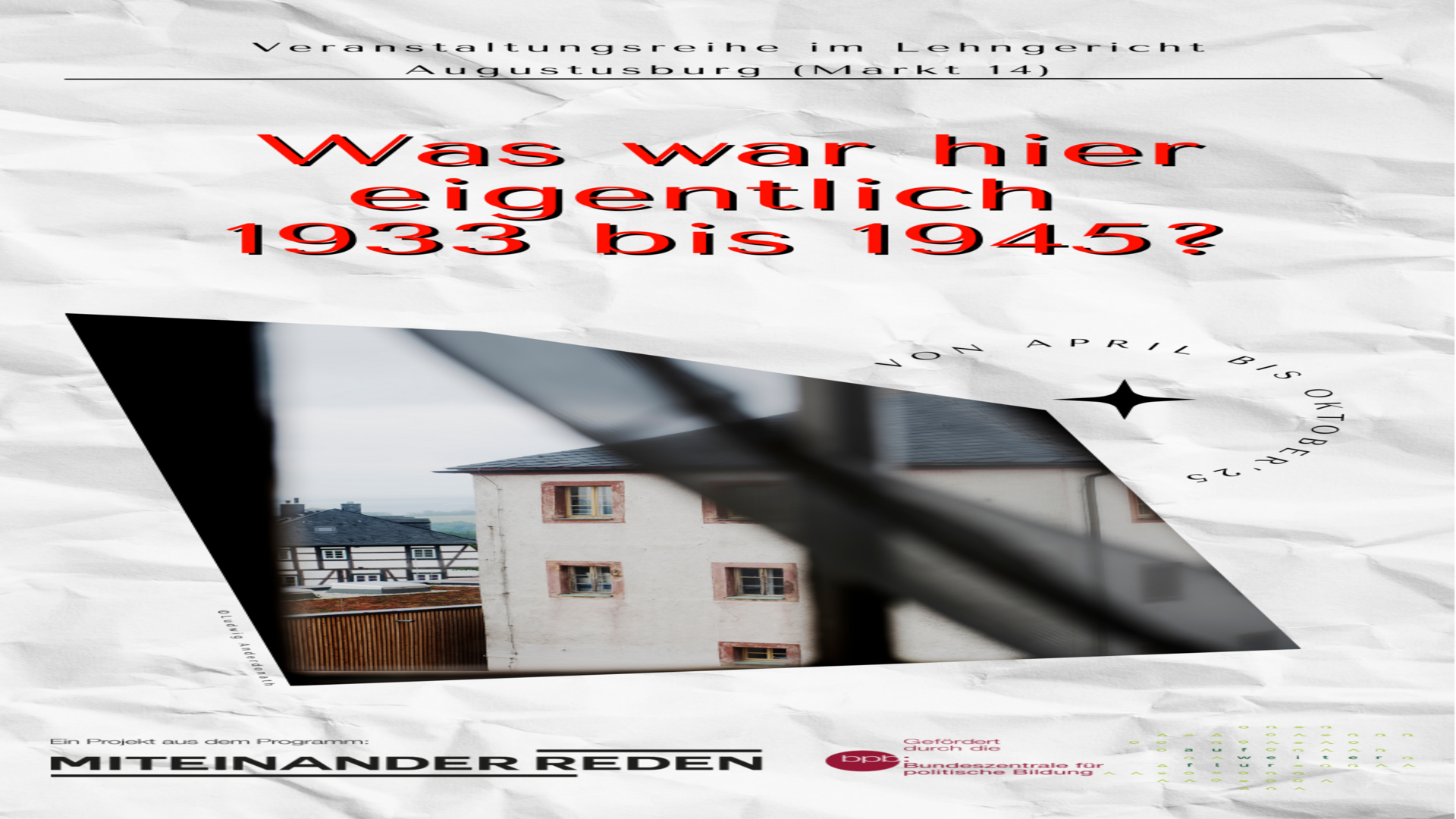 Die Lesung ist Teil der von der Bundeszentrale für politische Bildung geförderten Reihe “Miteinander Reden”, bei der sich mit der lokalen Historie in Augustusburg unter der Fragestellung “Was war hier eigentlich zwischen 1933-1945?” beschäftigt wird.